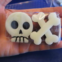 I made glow in the dark skull and cross bones soaps using an ice cube