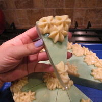 Interesting… So the soap has discolored in areas that were exposed to air right after I poured the soap. The areas that were up against the mold have not discolored. The cut surfaces have not discolored as well. The discoloration is pretty light, a light tan color. So, overall the vanilla color stabilizer seems to be working, sort of. I'll have to keep an eye on it and see if it discolors any more. I suppose if this is the most it's going to discolor I'll only use the color stabilizer when I use a log mold. That would limit the surfaces that touch air when I pour.